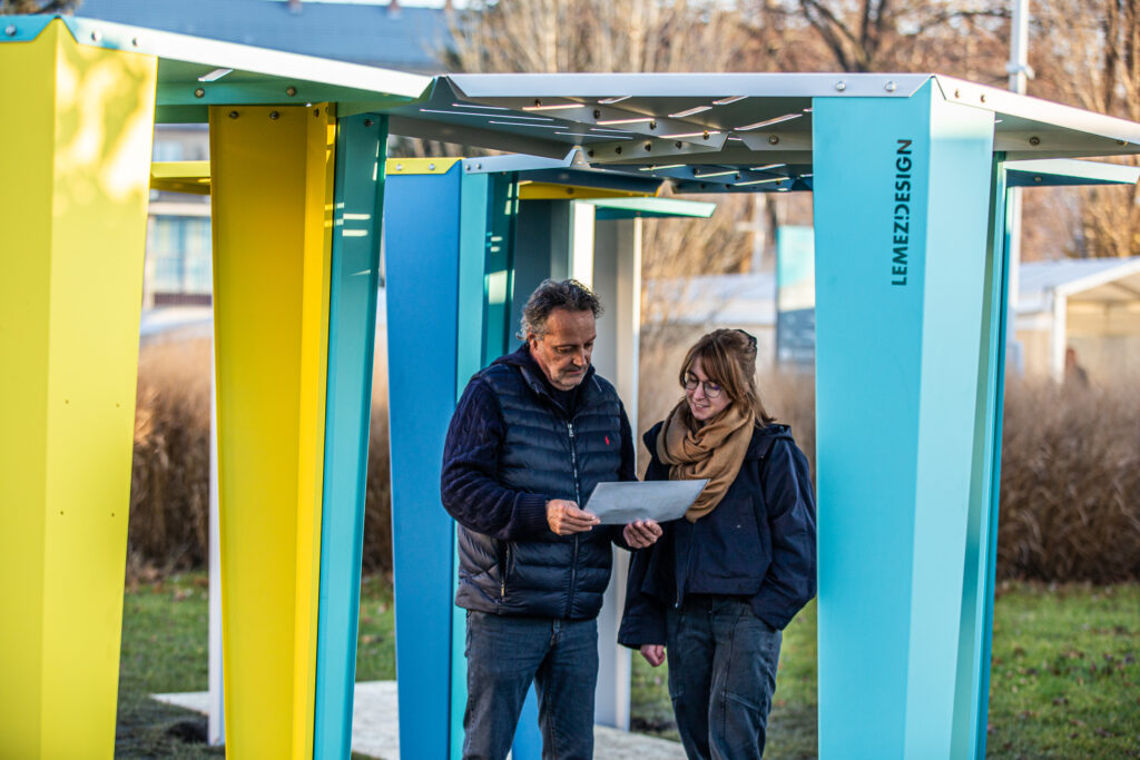 A Dagály-fürdő a Corvin Rajziskolát kérte fel, hogy hallgatói tervezzenek modern megjelenésű, de környezethez illő árnyékoló műtárgyakat. A rajziskola szakmai zsűrije és Lemezdesign szakemberei közösen tekintették át a pályaműveket, majd vezették végig a nyertes alkotást a megvalósítás felé.