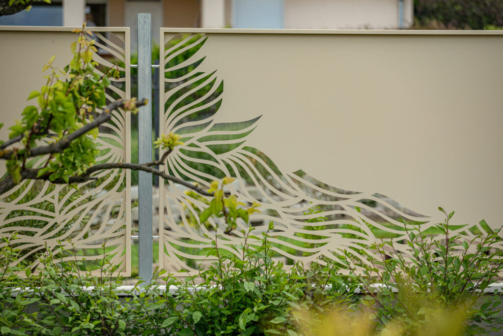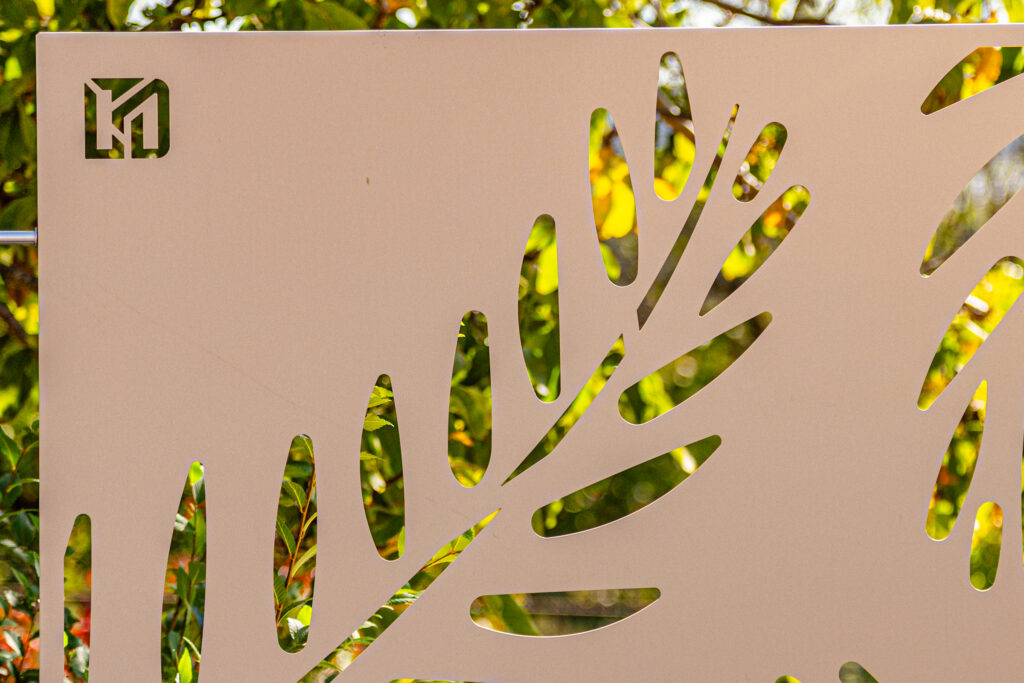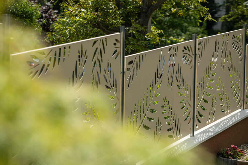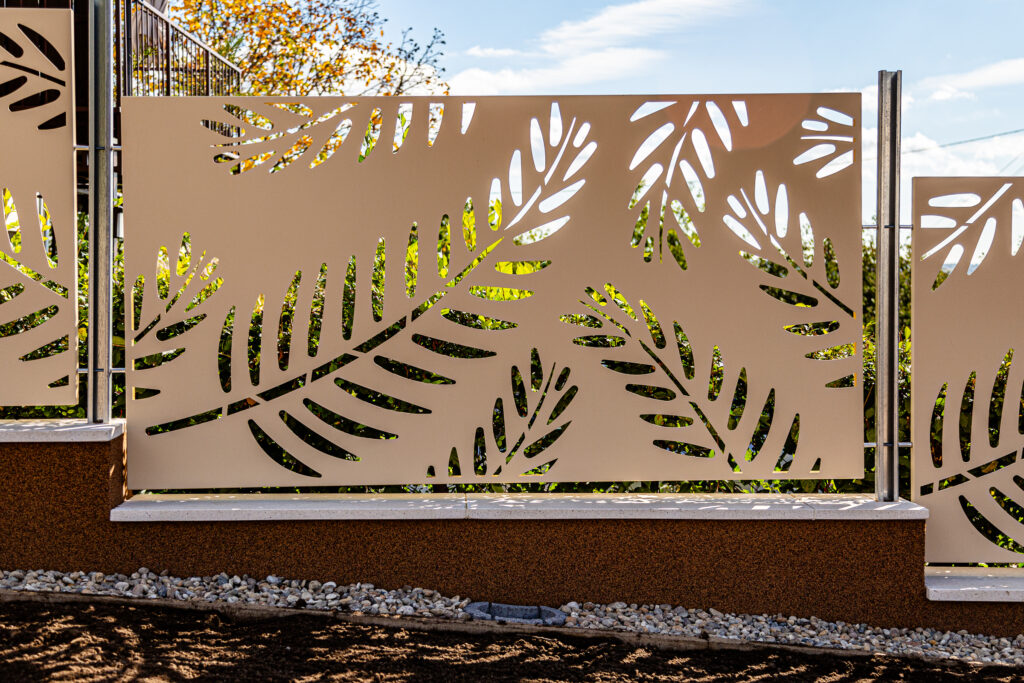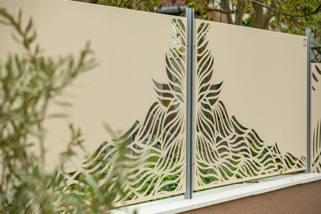 A kerítéselemek alapanyaga horganyzott acéllemez, a minták lézervágottak, a felületkezelés kétrétegű porfestés.