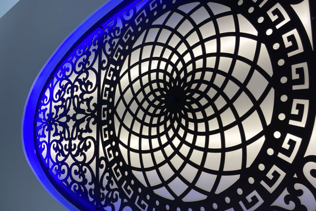 A belső terek megvilágítására szolgáló világítóablakok lézervágott fémbetétek elhelyezésével hangholhatóak az enteriőrben alkalmazott egyéb díszítőelemek világához.